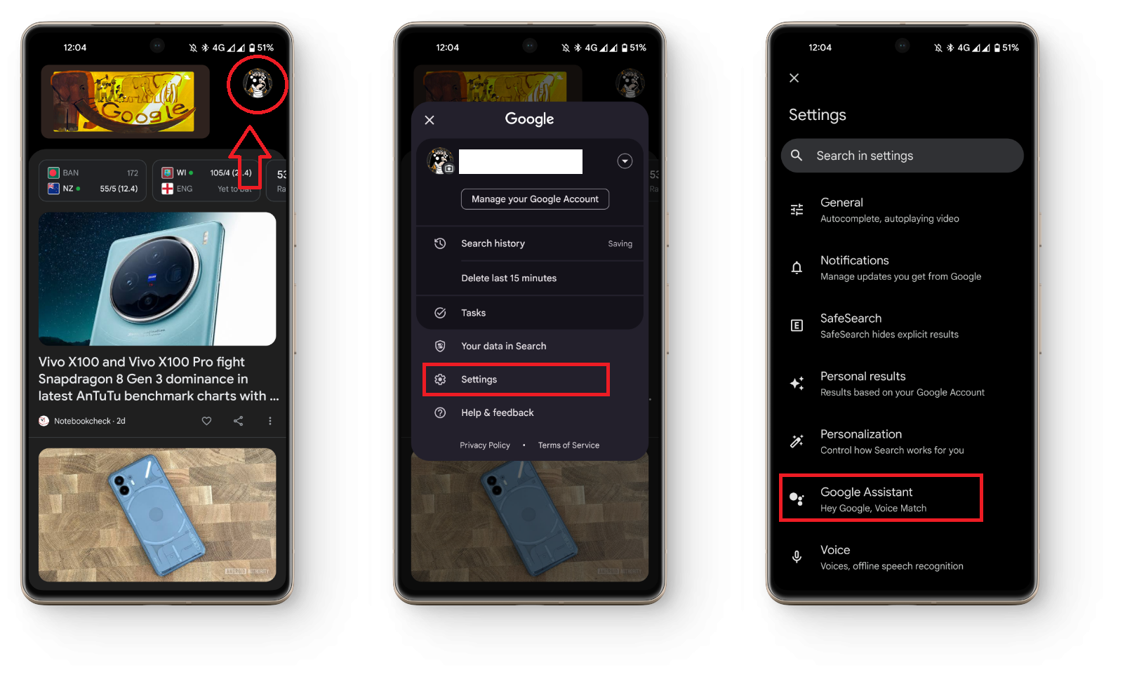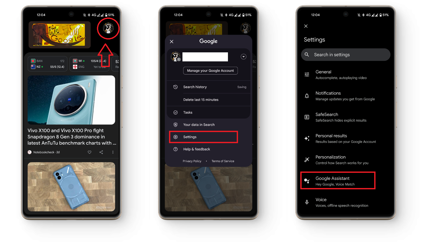 - Tap on Settings and select Google Assistant.