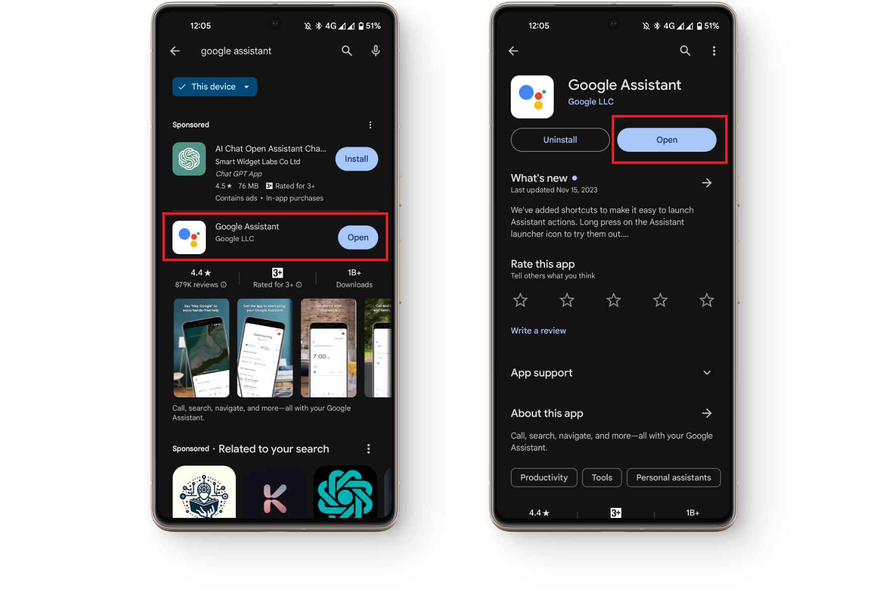 - Open Google Play Store and search for “Google Assistant.“