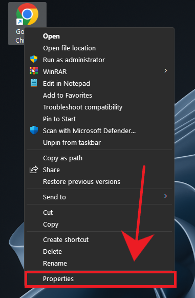 - Right-click your Chrome shortcut → Properties.