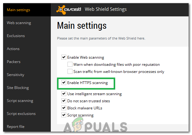 After analyzing some user reports, we have concluded that Avast and Chrome do not work well together; Avast’s Web Shield prevents certain functions of Chrome from functioning properly. Therefore, in this step, we will disable the HTTPS Scanning feature on Avast’s Web Shield. To do this: