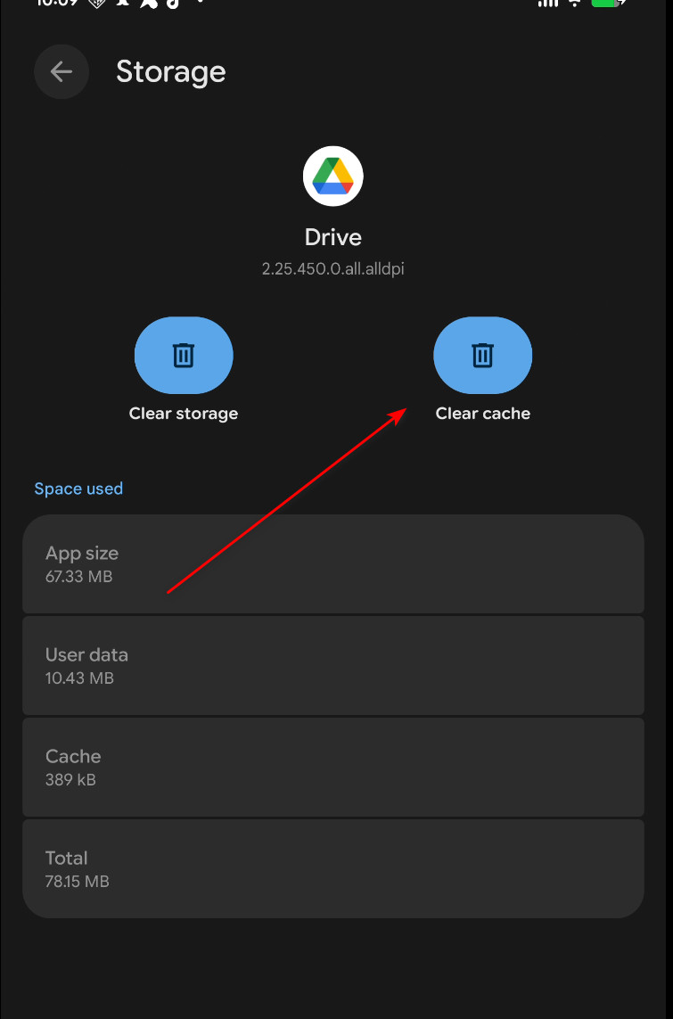 Sometimes old app files cause wrong network detection. Clearing the cache helps Drive refresh its settings. This does not delete your files.