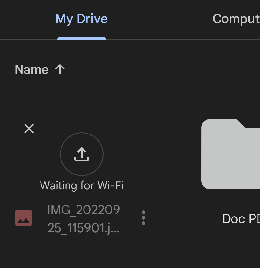 The “Waiting for Wi-Fi” message appears when Google Drive thinks your Wi-Fi is not good enough for uploading. When this happens, Drive stops the upload and waits until it feels the connection is safe to use.