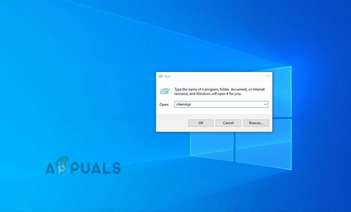 - Press Windows key + R to open up a Run dialog box. Next, type ‘cleanmgr’ in the text box and press Enter to open up the Disk Cleanup utility. When you are prompted by the UAC (User Account Control), click Yes to grant admin access.