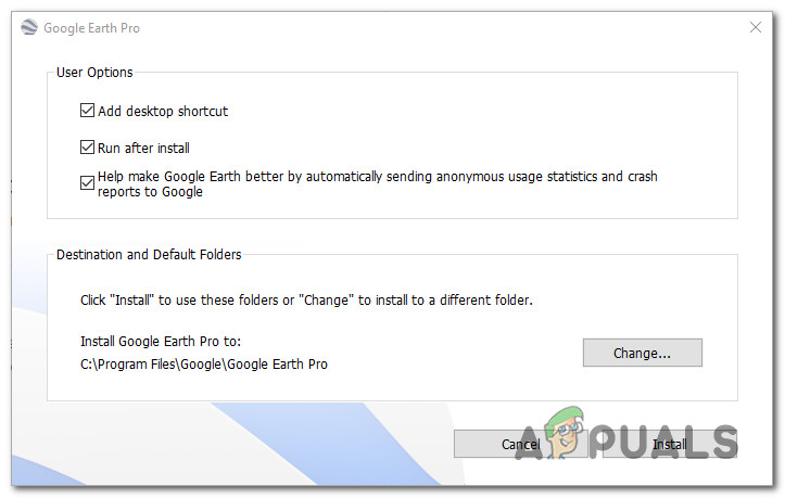 - OS drive contains remnants of a previous installation – One of the most common causes that will produce this error is a situation in which a silent installer actually installed the program on your PC despite the error message or a scenario in which remnant files from a previous installation of Google Earth is presenting the newer build from being installed.