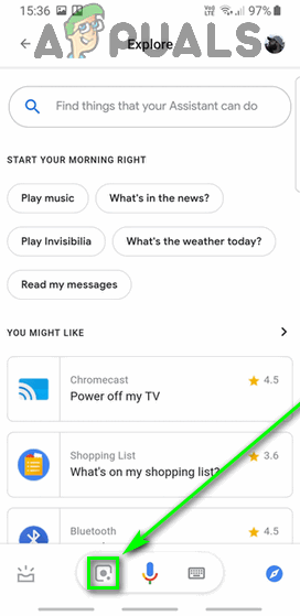 Tap on Explore - Tap on the Google Lens icon (represented by an icon that looks like a camera) located directly next to the Microphone icon at the bottom of your screen.
