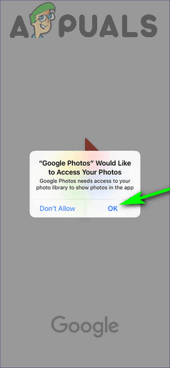 - When asked to do so, provide the Google Photos app with permission to access your device’s image gallery.