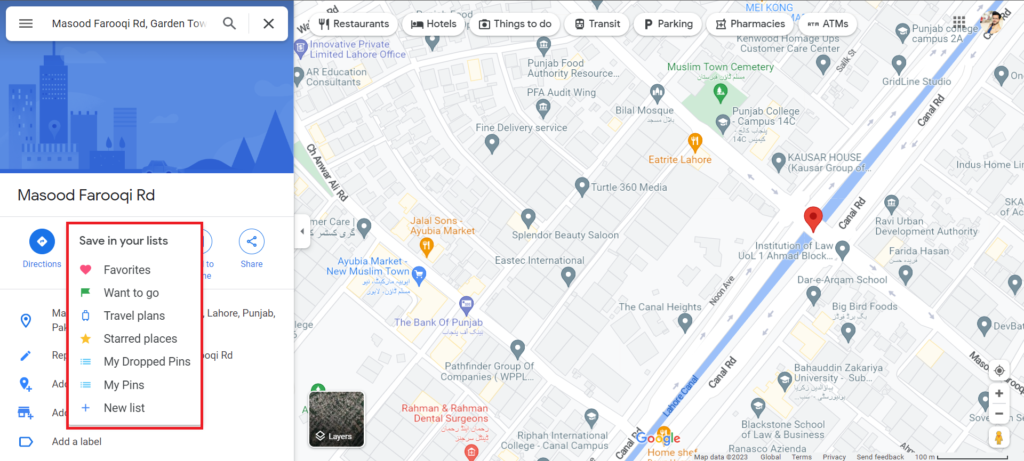 Click on “Save” button - You can use Google Maps’ pre-made lists (such as “Favorites” and “Want to go“), or you can make your own, perhaps based on a trip you’re on or a walk you’re planning.