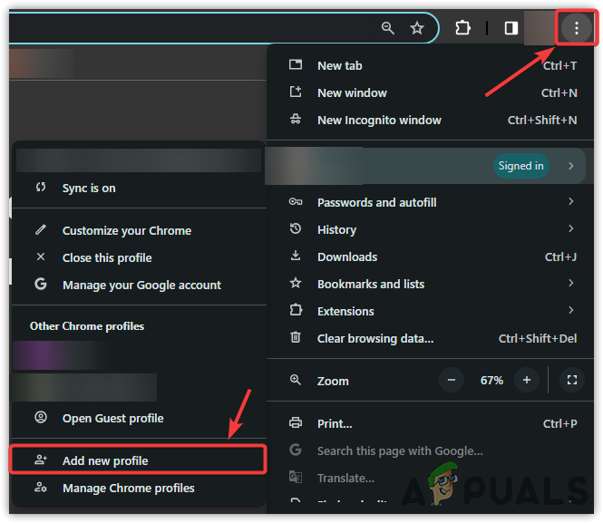- Hover over your account name, then click on Add New Profile before signing into your account.