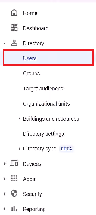 - In the left-hand navigation panel, navigate to Directory > Users.