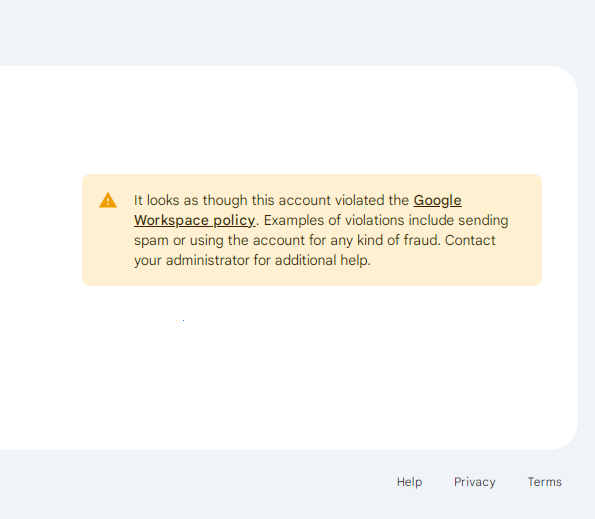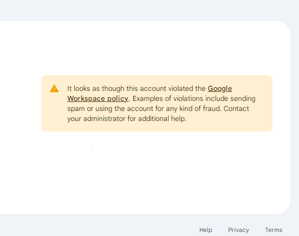 A disabled user loses complete access to all associated Google services such as Gmail, Drive, Calendar, Google Docs, Sheets, Slides, and other core Workspace tools, significantly affecting productivity. You may also see a specific error indicating an internal account suspension. This clearly means you need to contact your organization’s IT team rather than Google Support.