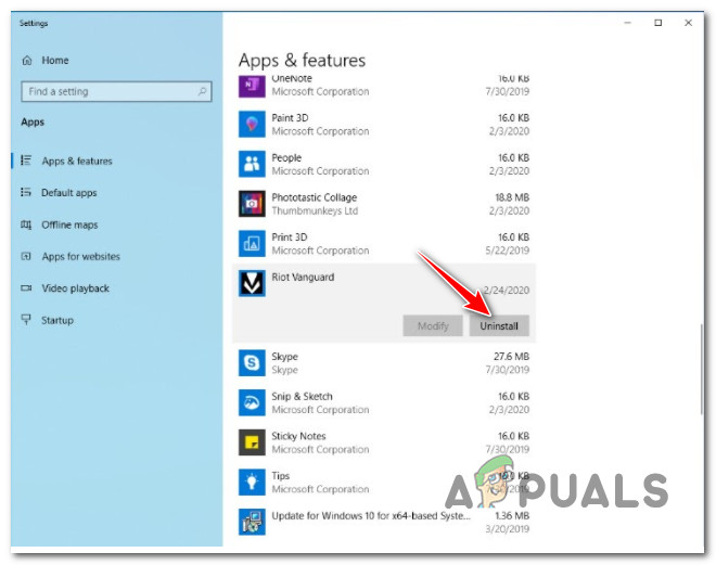 To check if Vanguard is causing the issue, try disabling the app. If the error is resolved by doing so, go ahead and uninstall the application via Windows Settings. Here is how you can do that: