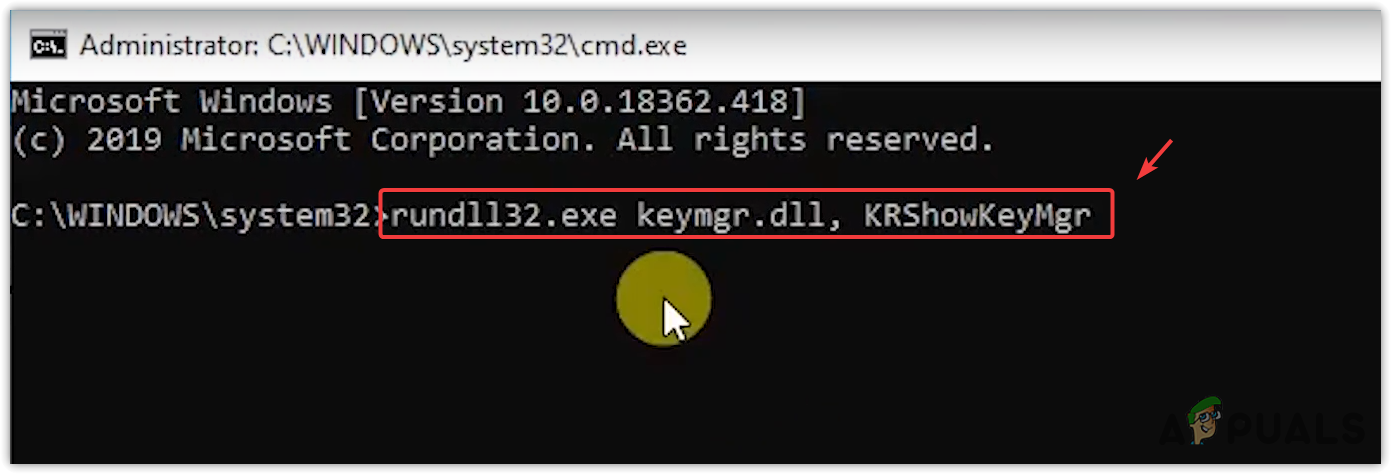- Type `rundll32.exe keymgr.dll, KRShowKeyMgr` in the new command prompt window, and press Enter. The Stored User Names and Passwords window will appear.