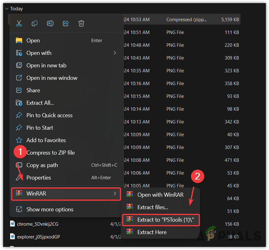- Right-click the PSTools zip folder and choose Extract to PSTools.
