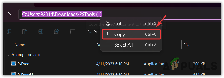 - Maximize the window with the PSTools folder.