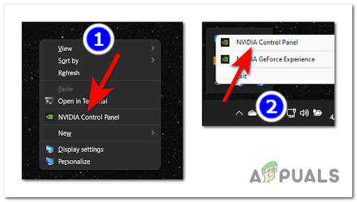 - Once you’ve done that, open the Nvidia Control Panel. To do this, you need to either right-click on the screen and open it from the little menu or open it from the taskbar’s hidden menu.