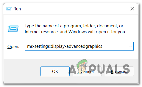- Type inside the search bar ‘ms-settings:display-advancedgraphics’ to open the Graphics Settings.