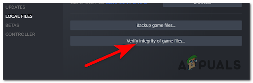 - Inside the Properties screen of the affected games, go ahead and click on Local Files, then click on Verify Integrity of Game Cache.