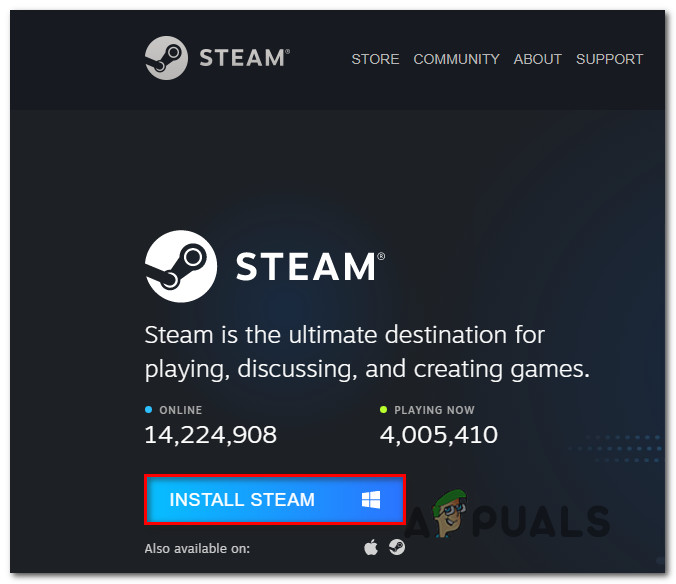- Inside the Steam download page, click on Install Steam and follow the instructions to reinstall the digital store.