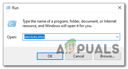 - Press Windows key + R to open up a Run dialog box. Next, type ‘services.msc’ and press Enter to open up the Services screen. If you’re prompted by the UAC (User Account Control), click Yes to grant admin access to the Services screen.