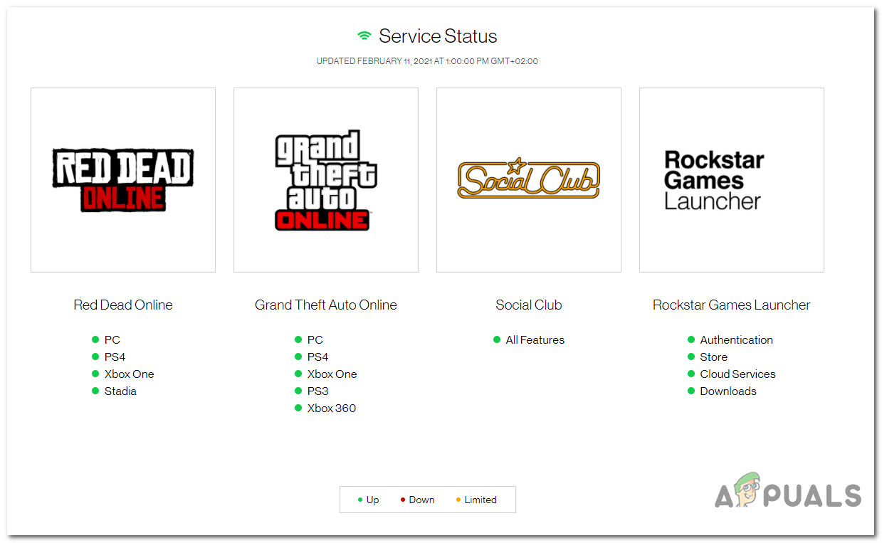 So before you start troubleshooting a local issue that might trigger this problem, the first thing you should check the status of the Social Club infrastructure. Fortunately, Rockstar maintains a status page where you can check if there’s an issue with the Social Club or any game that uses it.