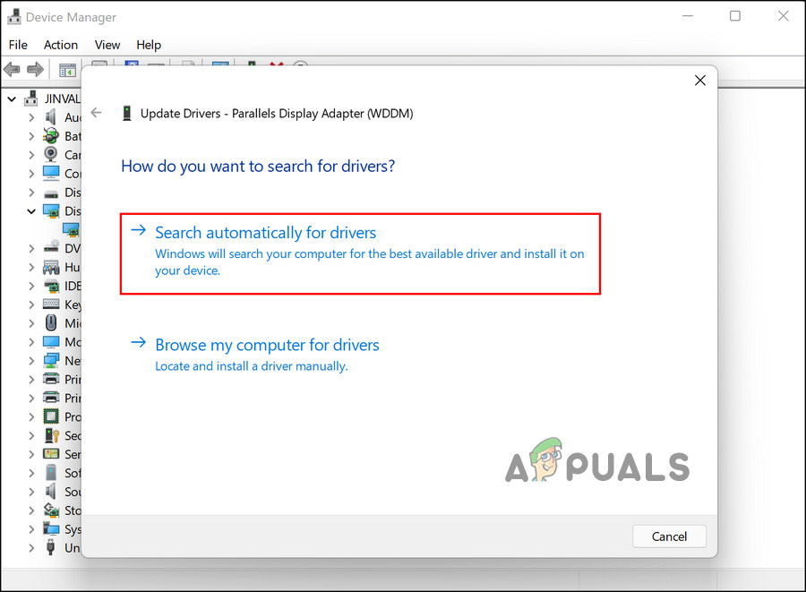 Inside the Device Manager updating the GPU - After that, select the option Search automatically for drivers.