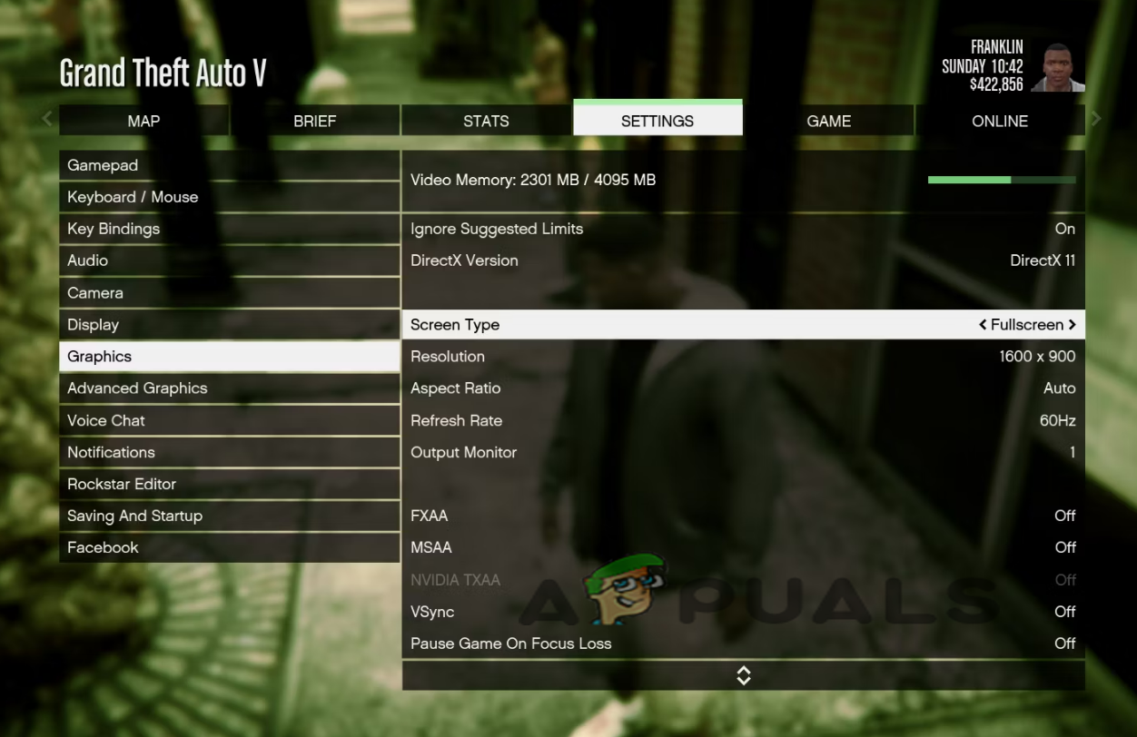 Another reason that causes this problem on GTA V is high-resolution settings. So, if you have set the display resolution to the full screen then you may get into this problem on the game. Setting the high resolution may trouble you with the problem as your system start consuming high resources and while running the game it starts showing a low FPS problem. So, when such is the case found, try disabling full-screen mode on the game.