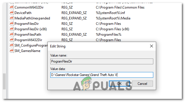 - Replace the current value of ProgramFilesDir with the exact location of your GTA V installation. By default, that location should be D:\Games\Rockstar Games\Grand Theft Auto V.