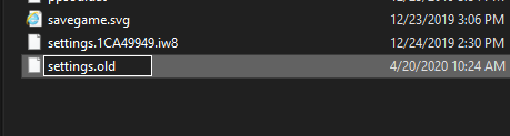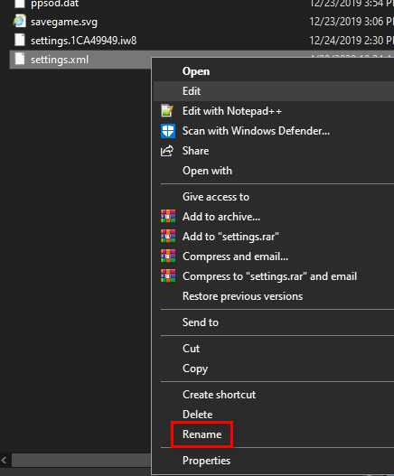 - After you manage to land in the correct location, right-click on cfg.dat and choose Rename from the context menu. The same as before, rename the file with the .old extension to force the game to ignore the settings.