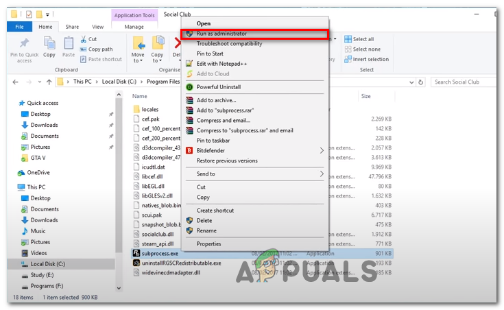 One other potential problem that might cause this GTA V error is a failure to call upon the Social Club component (subprocess.exe). In the vast majority of reported cases, this problem will end up occurring because Social Club doesn’t have the right to open with admin access (which it needs).