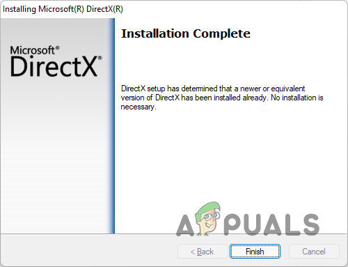 DirectX Installation Finished - After that, go ahead and try to launch the game to see if the problem is still there.