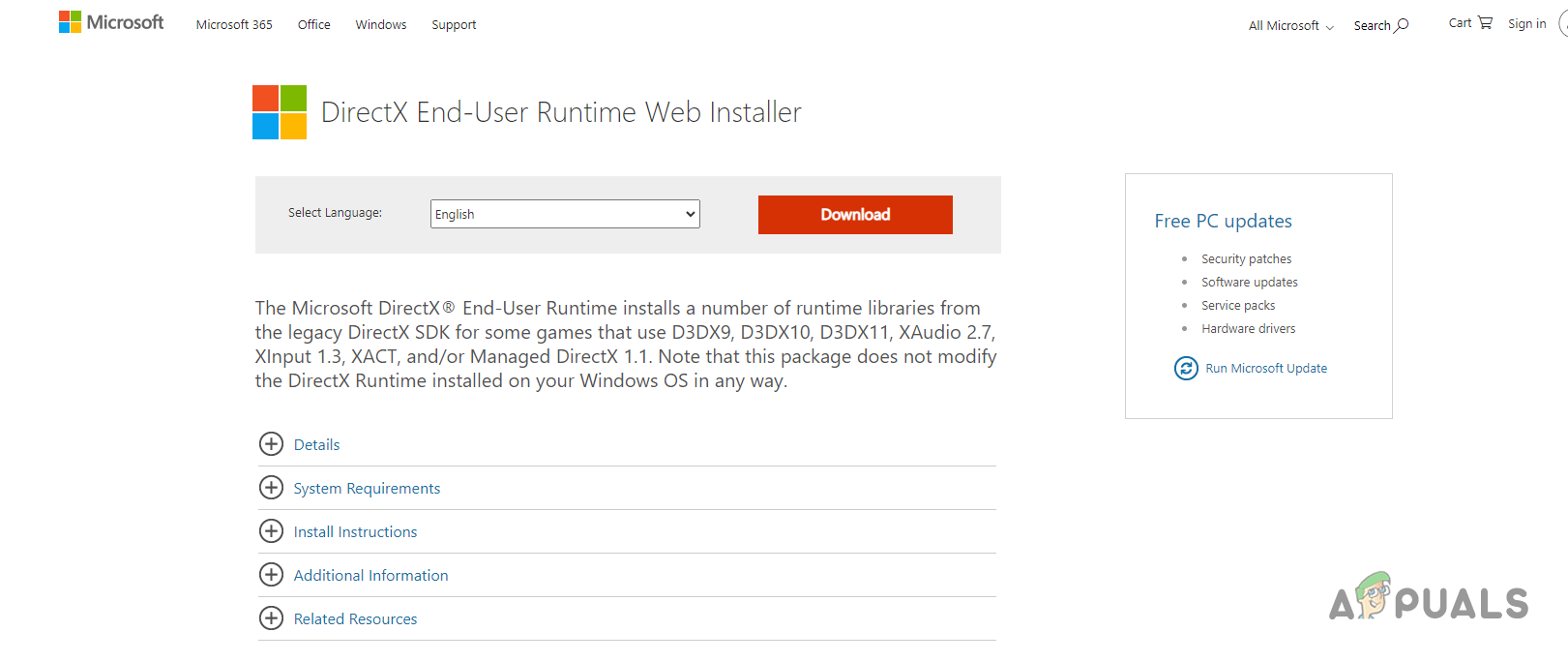 - First of all, head to Microsoft’s website to download DirectX by clicking here.