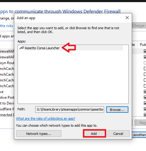 - Repeat these steps to add all the applications in the Assetto Corsa and Content Manager folders.