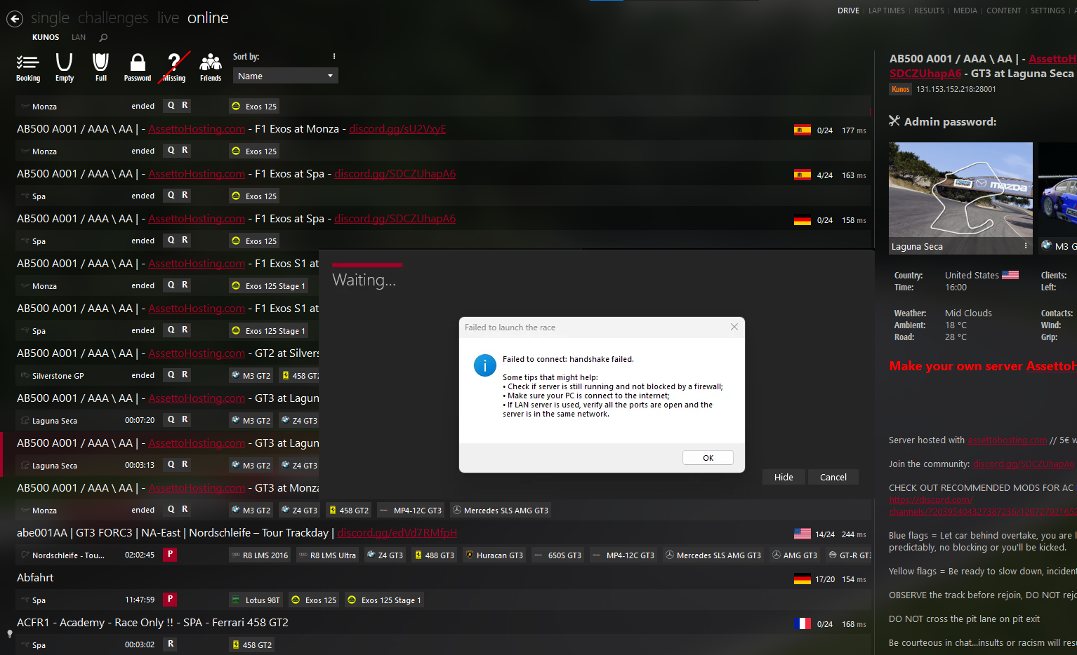 Fix: “Failed to Connect: Handshake Failed” in Assetto Corsa