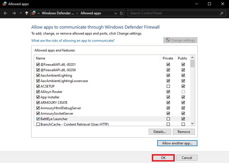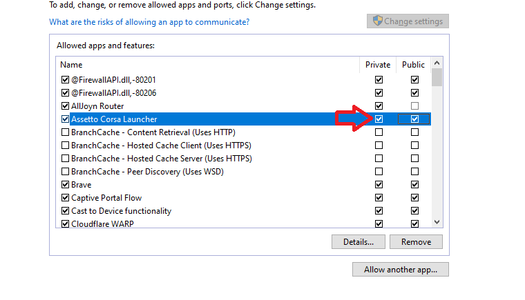 - Make sure to check both the “Public” and “Private” network boxes for each added application.