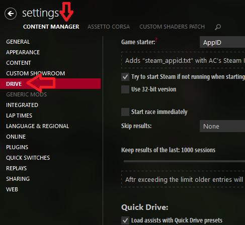 - In the settings menu, select Content Manager from the options, then click on the Drive button in the left pane.