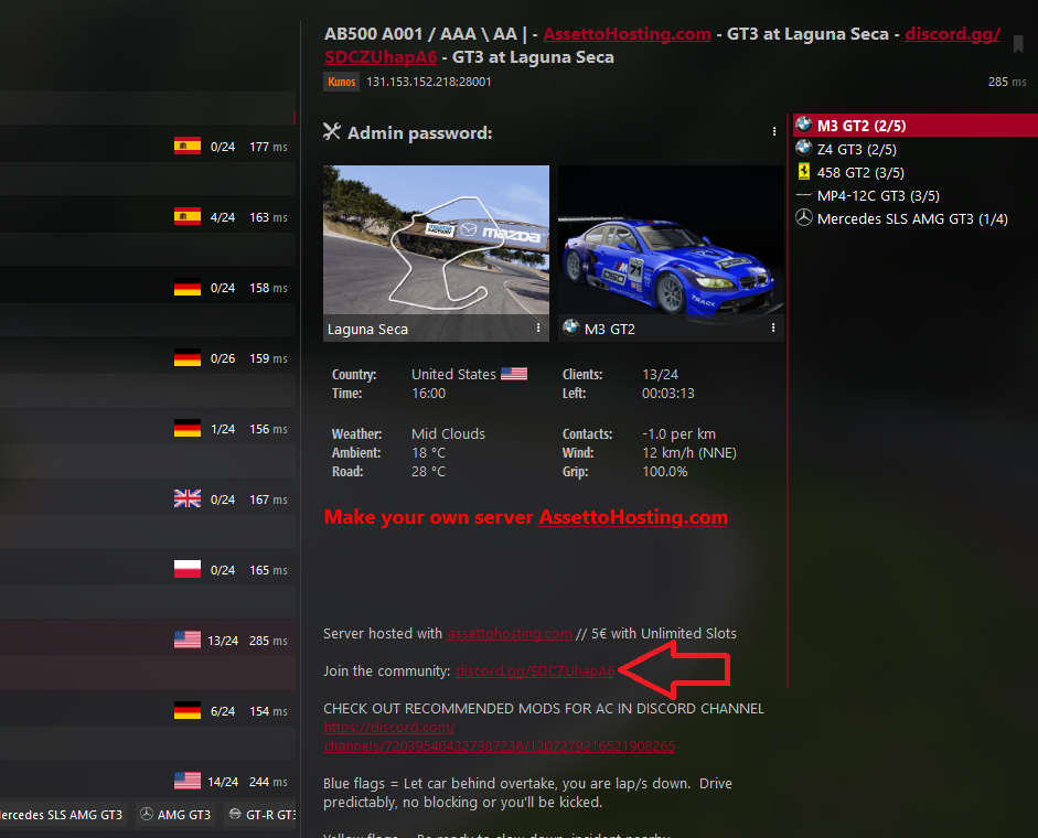 - Open the Discord app and join the game’s official Discord server. (You can usually find the Discord server link in the server description within the Content Manager.)