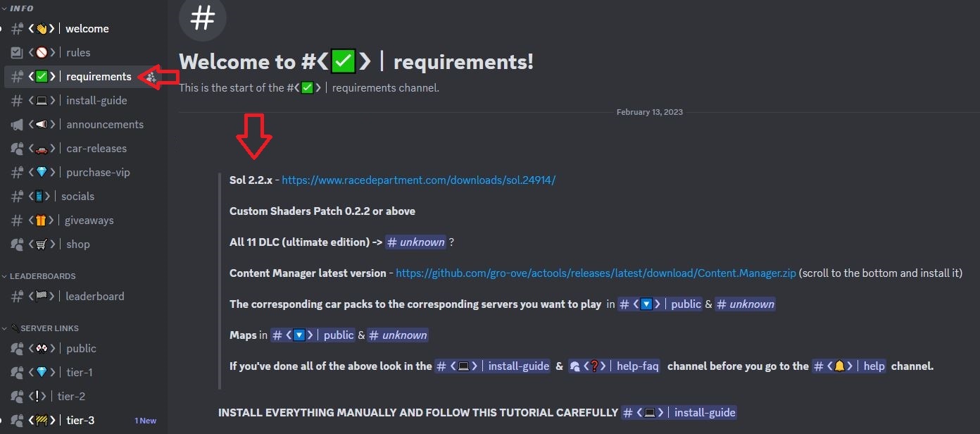 - Finally, check the ‘Requirements’ channel to see if there are any required DLCs or additional conditions you need to meet before joining the server.