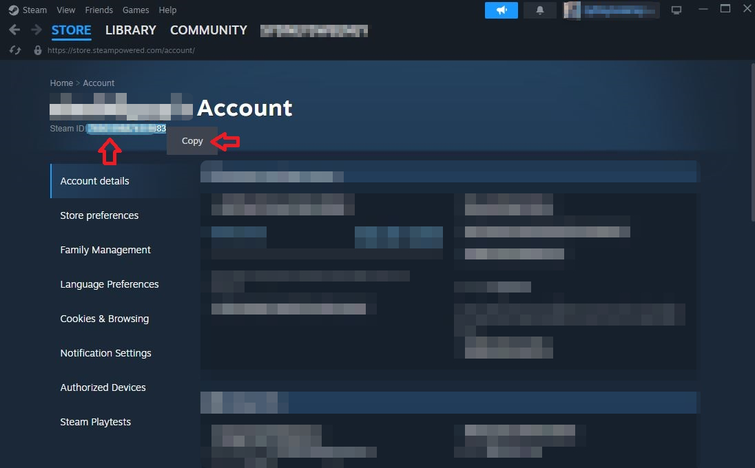 - To get your Steam ID, open the Steam app, right-click on your username, and select Account Details.