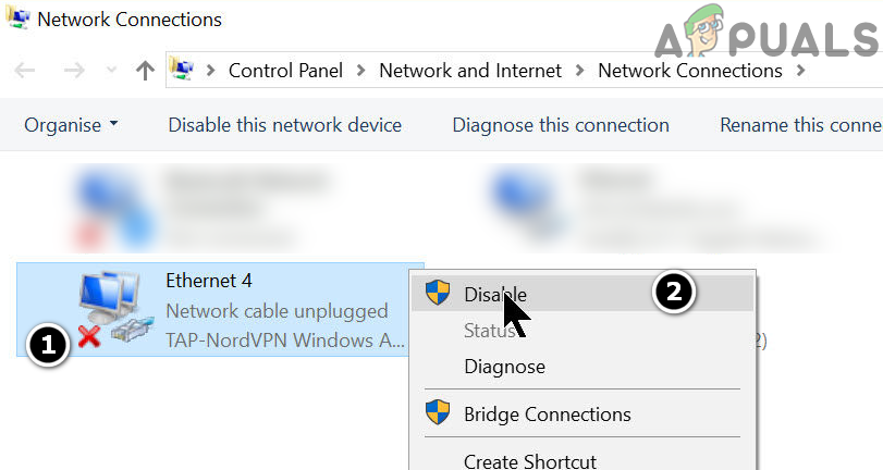 Disable VPN in the Network Connections