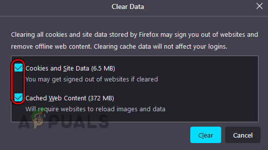 - Here, click on Clear data and Clear cache one after another to flush the cache.