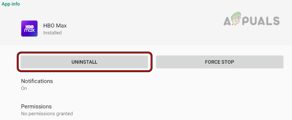 Uninstall the HBO Max App - Next, click on Uninstall again for final confirmation and wait until uninstalled.