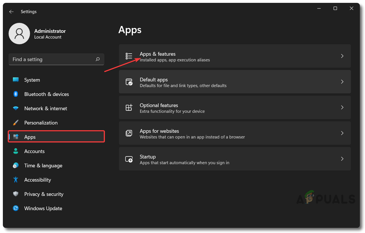 - Then, go for the option Apps and select Apps & features.