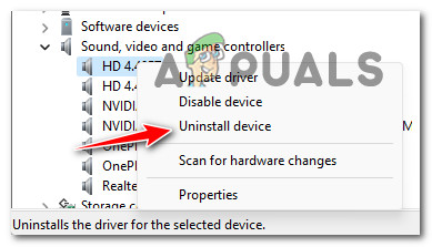 - Corrupted audio driver – There are also situations where your current audio driver is affected by corruption and is refusing to accept new device connections. Several users that we’re also dealing with this problem have confirmed that they managed to fix this issue by uninstalling the current driver forcing Windows to switch back to the generic audio driver.
