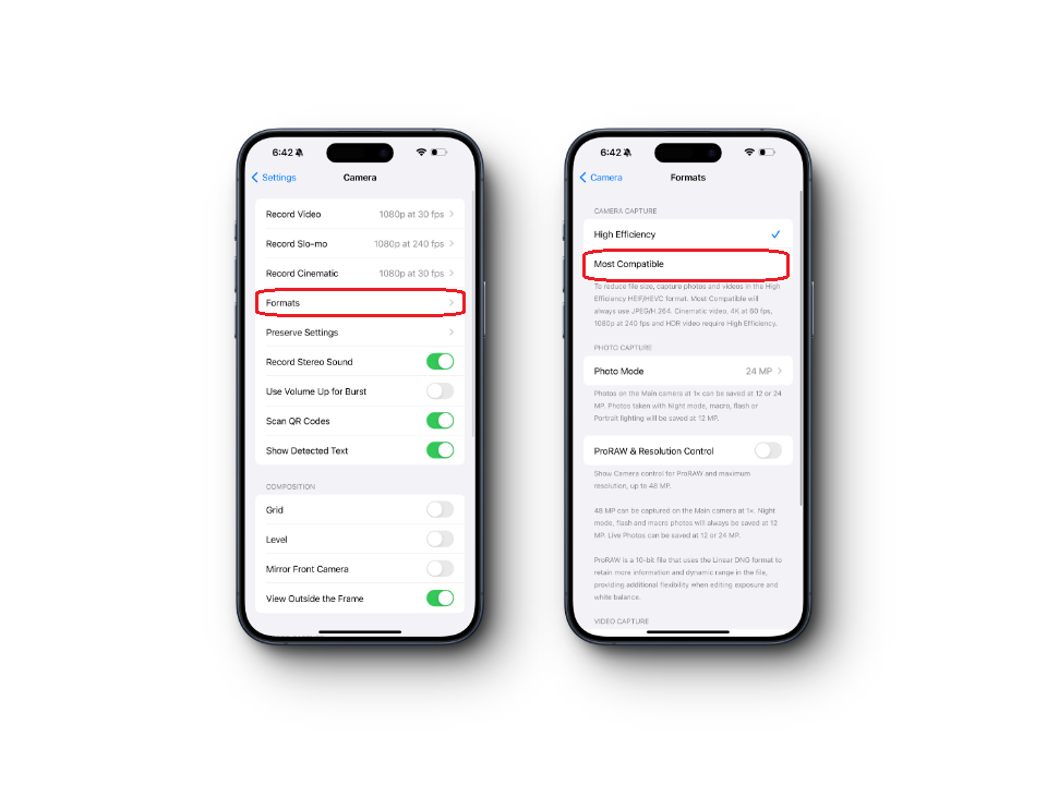 Since the HEIC format isn’t too popular and causes quite a bit of issues if you don’t convert it into a more common format, Apple allows you to change this, and capture all of your photos in the JPEG format, like it used to do before iOS 11.