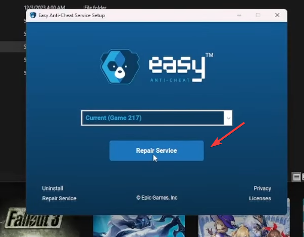 The EAC contains several crucial files that should not be corrupted or problematic. EAC must initialize correctly to ensure a secure environment. If the EAC files are damaged or corrupted, it may prevent the game from launching. Therefore, we can try repairing the anti-cheat files to ensure they are intact.