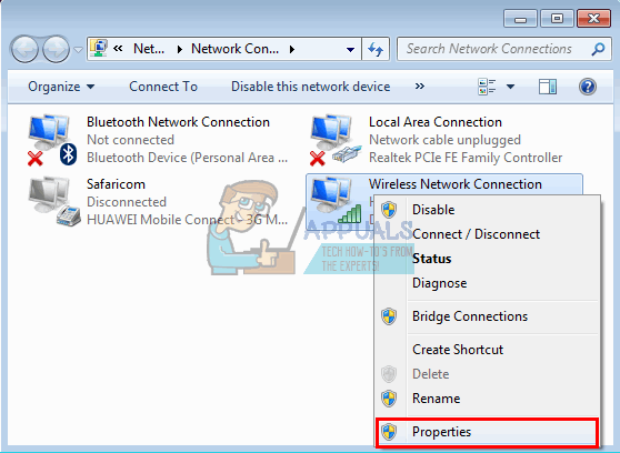 Open Network Connections via Run. - Right-click on your connection and select “Properties.”