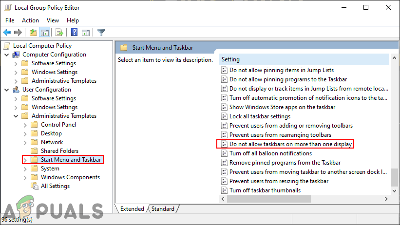 The Local Group Policy Editor method will disable the Taskbar on multiple displays and it will also gray-out the settings for this in the Settings app. Unlike the Registry Editor, the Local Group Policy Editor is pretty safe and the user can enable and disable the settings anytime.