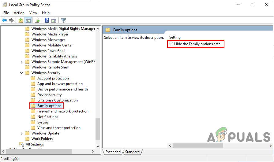 The Group Policy is a Windows feature through which users can configure many different types of settings for their operating system. The Group Policy has a setting for hiding each section of the Windows Defender Security Center. The user just needs to modify the specific setting to hide the specific settings in the Settings app. Follow the below steps to hide the Family Options area on your system: