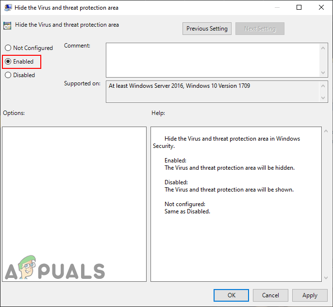 Force updating the group policy - You can always enable the Virus and Threat Protection area again by changing the toggle option to Not Configured or Disabled in step 3.