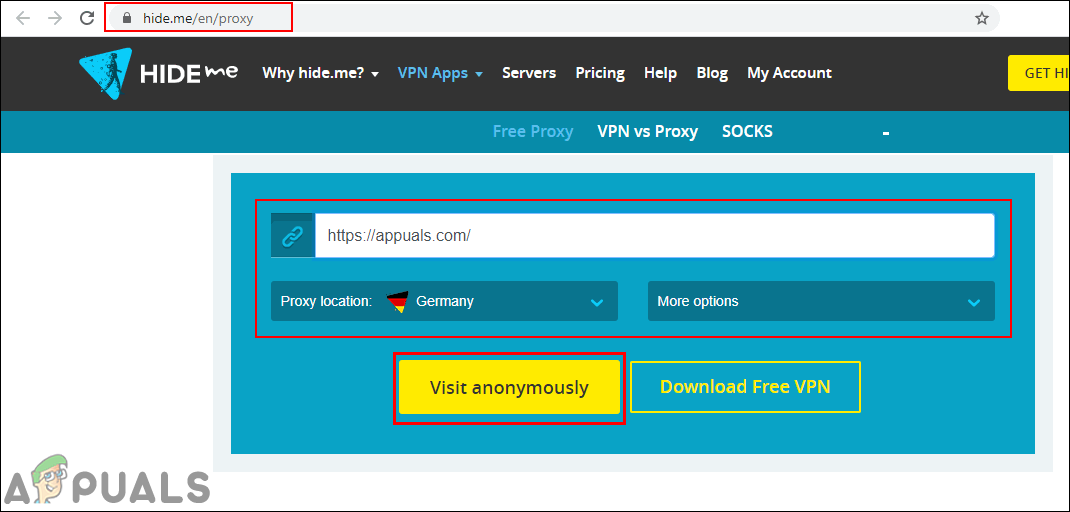 - Open your browser and go to the Hide Me Proxy site. You can select a Proxy location and some other options before searching for any URL.